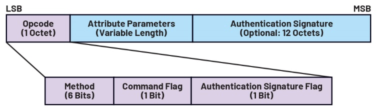 ATT PDU包由操作码、属性参数和身份验证签名构成(图9)。操作码字段用于标识PDU的方法/类型,例如请求或响应。它还包括一个命令标志,用于指示PDU类型是否为命令;以及一个身份验证签名标志,用于指示数据包是否使用身份验证签名。