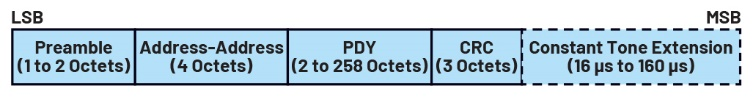 如图16所示,未编码PHY的BLE数据包以前导码开始,之后是访问地址、PDU和循环冗余校验(CRC)。