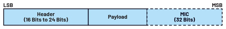 如上图所示,数据信道PDU由连接事件使用。它由2或3字节的标头、有效载荷以及用于加密链路的消息完整性校验(MIC)组成。